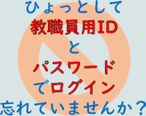 教職員ID,パスワードについては、毎年度4月上旬に各学校へ文書を発出しておりますので、そちらでご確認ください。電話での問い合わせには応じておりません。