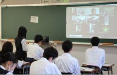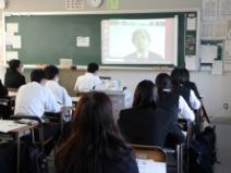 今回は1年生6クラス全ての教室を森川先生とZoomでつなぎ,オンライン形式で行いました。