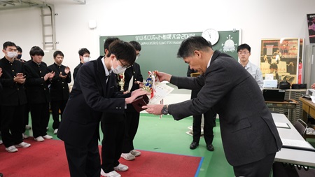 2月10日(土)本校で行われたロボット相撲大会の香川県大会に、メカトロ部員が出場しました。結果は、自立型の部に唯一出場した本校の2名がそれぞれ、1位 土田(1年)、2位 宮崎(2年)という成績を収めました。リモコン型の部では、残念ながら入賞することはできませんでした。来年度の全国大会で活躍できるように今回の結果を受け入れ、練習に励みたいと意気込んでいました。