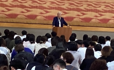 日本進路指導推進協議会会長の山口和士(やまぐちかずし)先生を講師にお招きし、2年生生徒および保護者向けにご講演いただきました。生徒と保護者への心のこもった篤いメッセージを90ページにわたる資料と90分のご講演に込めてくださり、あっという間の時間でした。また、前日にも当日にも生徒と面談をしていただきました。生徒や保護者からは、「背中をおしてくださりありがとうございました」、「不思議と話に夢中になった」、「これからでもまだ間に合いますという言葉が印象的だった」、「家族で話をしようと思った」等、大変心に響くご講演で、貴重な時間でした。