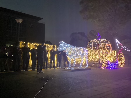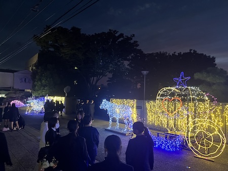 イルミネーションは今日から12月下旬まで、毎日午後8時まで、正門前で点灯されます。