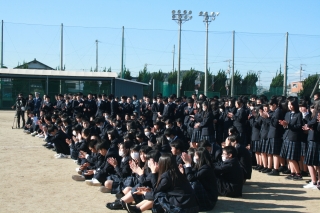 11月14日(水)に、5,6限に1年生対象に「自転車安全教室」がJA共済主連と観音寺警察主催で開かれました。はじめに観音寺警察暑の交通課長の本田様より講話があり、自転車事故の危険性を知り、未然に事故を防ぐための対応について学習しました。次に運動場に出て、自転車と車の事故をスタントマンの方に演じてもらいました。生徒も目の前で事故を疑似体験したことでより、事故の恐ろしさを感じることができたと思います。これを機に自転車の乗り方のマナーをしっかり守り安全に登下校してもらいたいです。