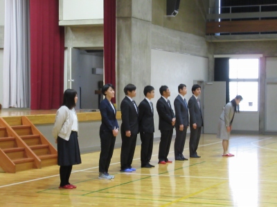 が行われ、離任される先生方、一人ひとりからお言葉をいただきました。先生方は、クラスや授業、