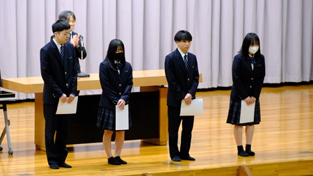 表彰式が行われた後、3学期始業式が行われました。校長先生からは気遣いや思いやりについての講話がありました。