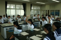 商業では、電卓を用いての簿記の授業、書道では、「書道ガール」