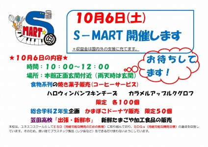 10月6日土曜日、11月10日土曜日 本校においてS-MARTが開催されます。