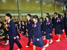 観音寺総合高校として2回目の卒業式を執り行いました。工業科99名、総合学科179名の計278名が本校を巣立ってゆきました。 在校生からの送辞では、2年生の合田さんが三年生への感謝の気持ちを述べました。卒業生の答辞では、3年生の松川さんが高校三年間の思い出や新しい生活を迎える決意を述べました。卒業生は在校生や保護者・来賓に見守られながら晴れ晴れとした表情で体育館を後にしました。 放課後は、卒業証書や後輩から贈られた花束を手に、写真を撮り合う姿が校内のあちこちで見られました。 卒業生とご家族のご健勝とご多幸を、心から祈念いたします。