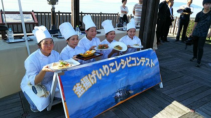 8月1日(木)、道の駅とよはまにて、釜揚げいりこコンテストの本戦がありました。書類審査に通過した5名(食物系列の3年生3名、2年生2名)が、腕を振るいました。最優秀賞(県知事賞)に3年生の山下愛花さん、準優勝(観音寺教育委員会表彰)に2年生の福岡亜弥香さん、奨励賞に3年生の白井玲奈さんが、選ばれました。暑い中、みんな頑張って料理を仕上げて、大変好評でした。