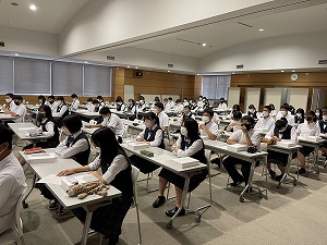生徒たちは、目を輝かせながら新しいiPadを手にしていました。同時に情報の先生より、iPadの取り扱いについての注意事項として、「まずは、学習において使用することが第一の目的であることと、みなさんの使い方次第では、ルールを見直していくことになるため、情報モラルに沿った使い方をしてください」という説明がありました。
