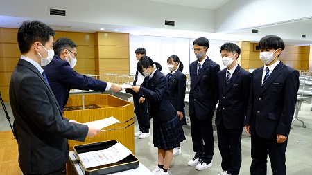 全校朝礼が全校生ライブ配信で行われました。表彰式のあと、校長先生から校訓についての説明がありました。