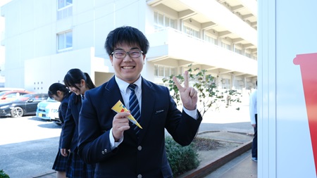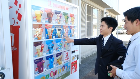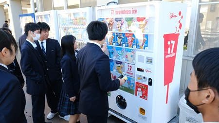 11月1日(水)観音寺総合にアイスの自動販売機が登場しました!昨年度より生徒会から要望があり、ついにその思いが届けられました。本日昼休みより購入できるようになり、購入者第一号は前生徒会長でした!生徒会は引き続き、食べ歩きやポイ捨てなどのマナー違反をしないよう注意喚起を行っていきます。自動販売機導入までの生徒会や全校生の努力が無駄にならないよう、ルールやマナーを守って使いましょう。