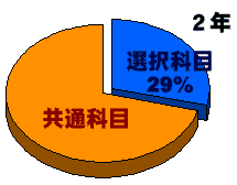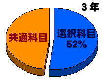 生徒一人ひとりの進路希望や興味関心に応じて,科目や講座が大幅に自由選択できるようになっています。1年生では,共通科目ですが,2年生では全科目の約30%が自由選択科目で,3年生になると52%が自由選択科目になっています。
