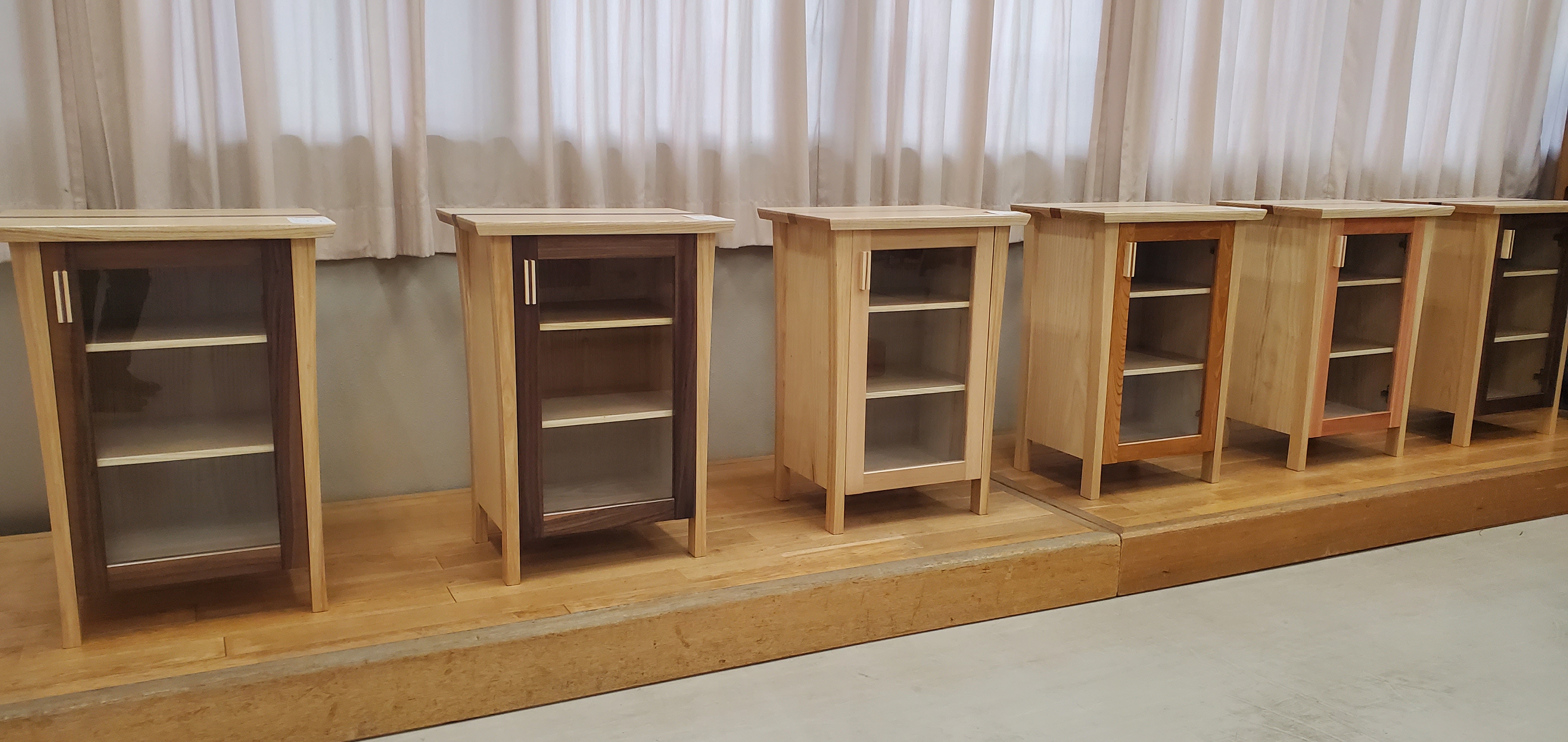 「インテリア科作品展示コーナー」では、授業で制作したスツールやキャビネットをなどの木製家具を販売しました。販売した家具は大人気で、午前中には完売となりました。また今年はコースターやシャーペンの木工製品も販売してより多くの方に制作作品をご購入していただけるようにしております。