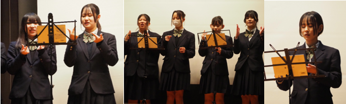 保育・福祉系コースの3年生が「にじ」「上を向いて歩こう」の手話コーラスを披露しました。