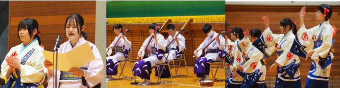 郷土芸能同好会が「こんぴらふねふね」を踊りました。息のあった歌声、演奏、舞で、日頃の練習の成果と伝統が感じられるパフォーマンスでした。