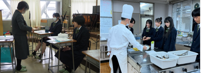 2019年10月31日(木)に台湾の高等学校の校長先生等10名が本校を訪れました。授業を参観・体験していただいた後、本校生徒がプロジェクターを使って学校説明を行い、昼休みには食堂でうどんをゆがいて食事をとりながら、交流を行いました。最初は緊張した面持ちであった生徒たちも、ともに食事をとる中で和気あいあいとした雰囲気でコミュニケーションをとることができ、いい交流となりました。
