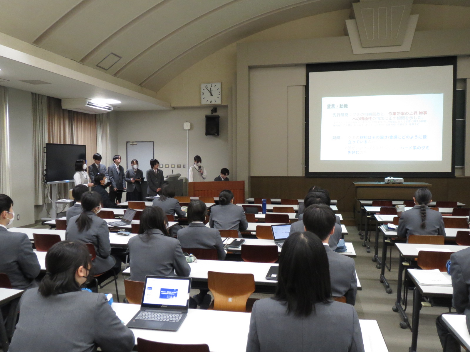 課題研究の研究成果発表を行いました。本日は前半のグループです。自身の進路希望に応じた研究を通して、進路への理解を深めました。また、自分以外のグループの発表を見る中で、自身の進路選択の幅を広げることもできました。