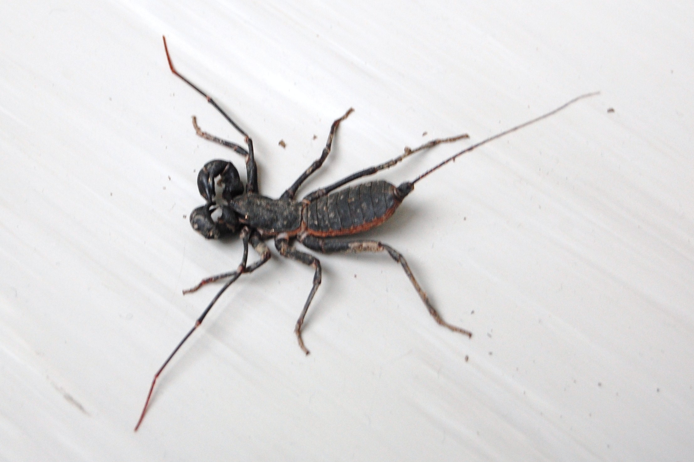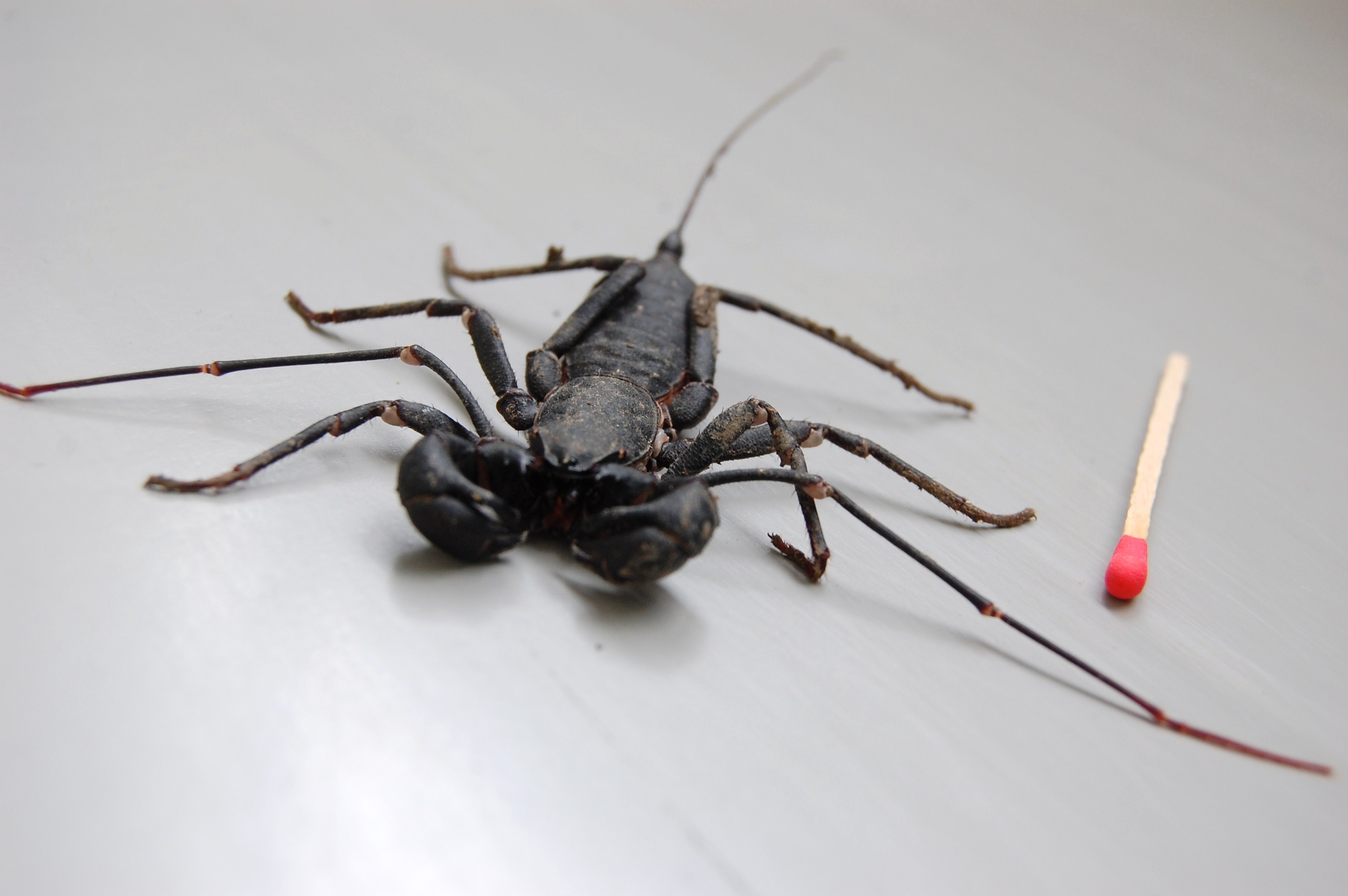 世界三大奇虫のひとつ『ビネガロン』が、園芸職員室に持ち込まれました。高校近くで農作業中に発見された方が、「見たことのない虫がいた。危険性は無いか?」と質問に来られました。調べてみると、クモの仲間の大変珍しい虫でサソリモドキとも呼ばれ、日本では九州南部から沖縄に生息する奇虫でした。