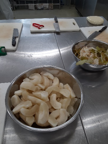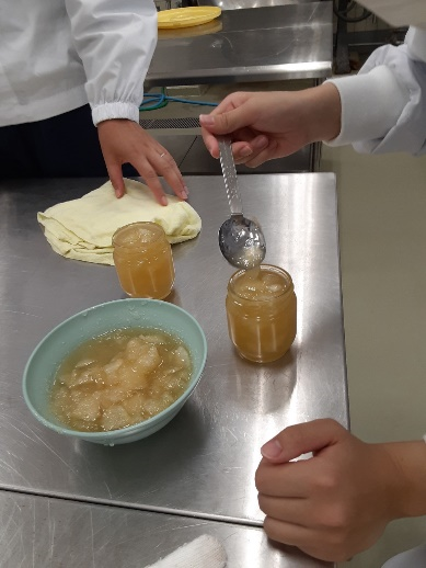 今日は3年生の専攻生達が梨の過熟果(かじゅくか=熟れ過ぎた果実)を使ったジャムを作るのを手伝います。