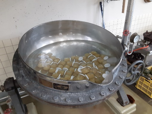 いよいよ、大鍋の糖度が60度を超え、クエン酸が投入されると、残りの作業は一気に行われます。