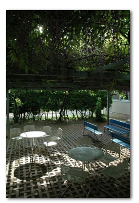 - (05年5月)食堂と校舎の間にある藤棚は毎年見事に花をつけます。