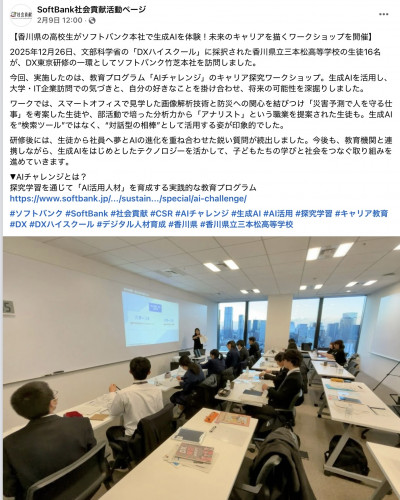 - ソフトバンク株式会社のfacebookに本校のDX研修が掲載されました!