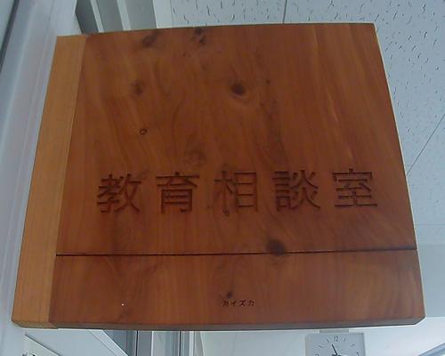 無機質なRC構造の校舎外観とは対照的に、校舎内にはいろんな箇所に木材が使われています。その一つが全国から集めた様々な無垢材を使ったクラス名プレートです。