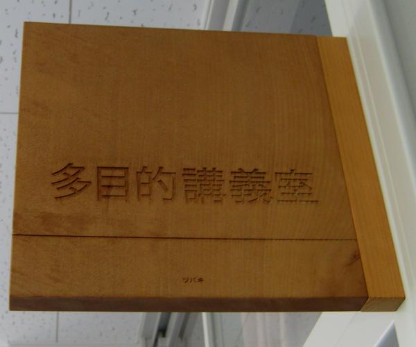 無機質なRC構造の校舎外観とは対照的に、校舎内にはいろんな箇所に木材が使われています。その一つが全国から集めた様々な無垢材を使ったクラス名プレートです。