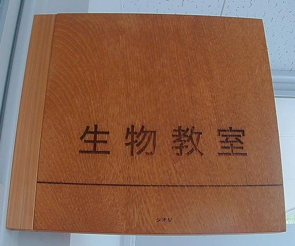 無機質なRC構造の校舎外観とは対照的に、校舎内にはいろんな箇所に木材が使われています。その一つが全国から集めた様々な無垢材を使ったクラス名プレートです。