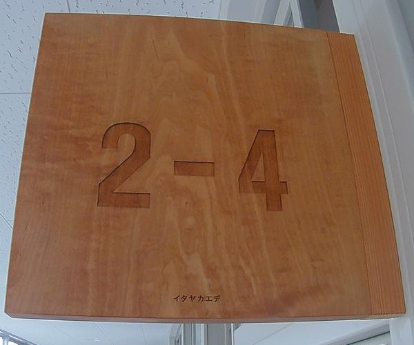 無機質なRC構造の校舎外観とは対照的に、校舎内にはいろんな箇所に木材が使われています。その一つが全国から集めた様々な無垢材を使ったクラス名プレートです。