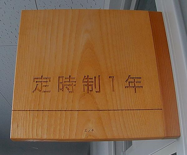 無機質なRC構造の校舎外観とは対照的に、校舎内にはいろんな箇所に木材が使われています。その一つが全国から集めた様々な無垢材を使ったクラス名プレートです。