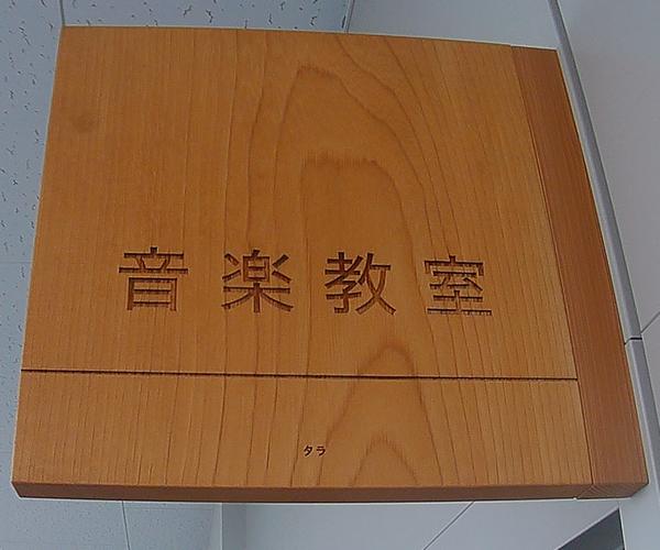無機質なRC構造の校舎外観とは対照的に、校舎内にはいろんな箇所に木材が使われています。その一つが全国から集めた様々な無垢材を使ったクラス名プレートです。