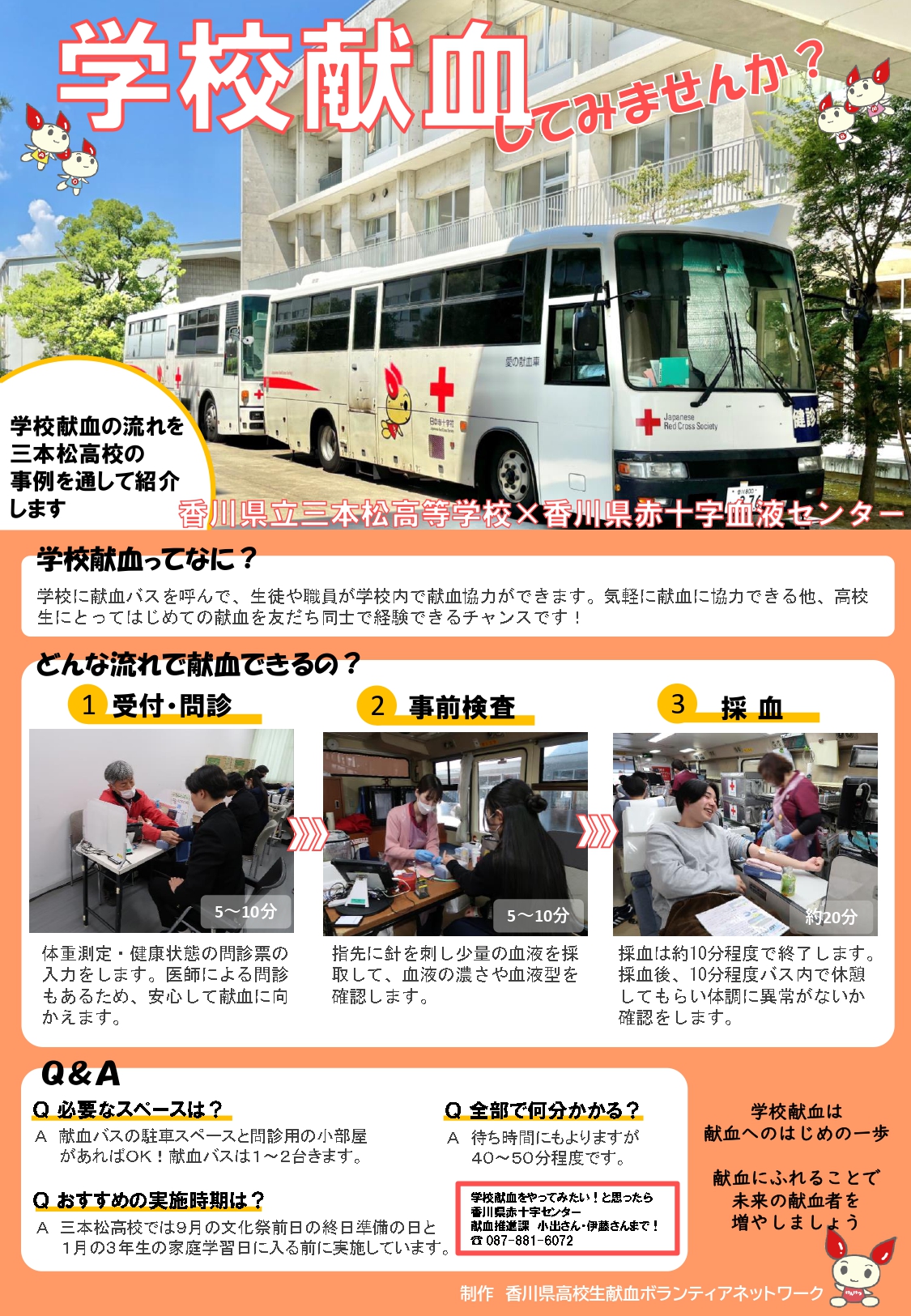 三本松高校での実施事例を詳しく紹介し、学校献血をスムーズに実施できるようサポートしています。