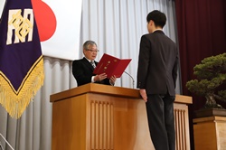 3月1日(水)、卒業証書授与式・修了証書授与式が行われ、全日制課程180名、定時制課程4名、専攻科生7名、計191名の生徒が本校を旅立っていきました。今年の卒業式は、新型コロナウイルス対策を緩和する方向でのガイドラインが出ていたため、来賓の祝辞が壇上から送られたり、マスク着用が自由となったりと昨年度までとは違った形での開催となりました。